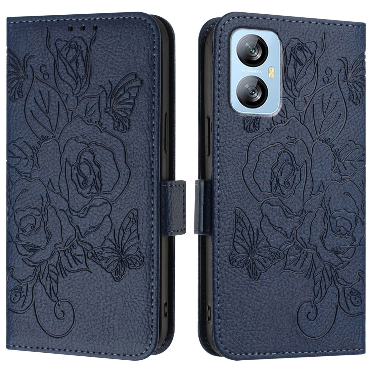 Funda de Cuero Antirrobo RFID para BlackView A52 con Relieve Rosa (Azul Oscuro)
