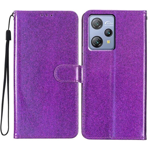 Funda de Cuero Glitter Powder para BlackView A53 Pro Flip (Púrpura)