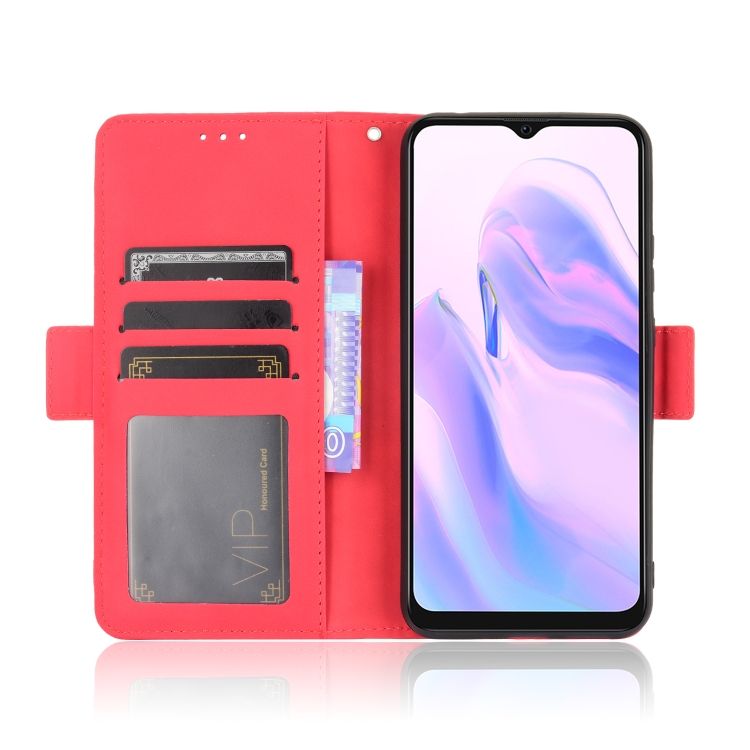 Estuche de Cuero Horizontal para BlackView A70 (2021) con Soporte, Ranuras para Tarjeta y Marco de Fotos (Rojo)