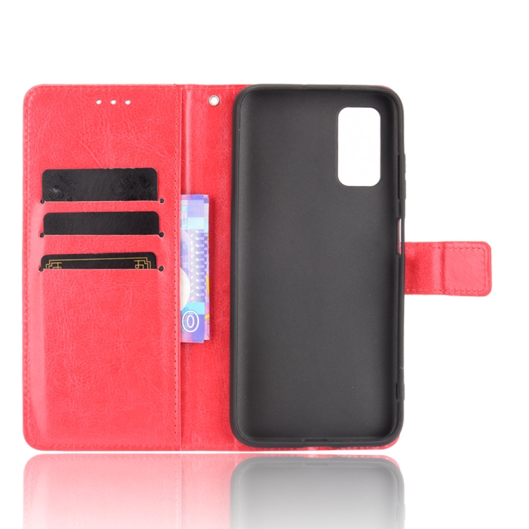 Funda de Cuero BlackView A90 Crazy Horse Texture con Soporte, Ranuras y Cordón (Rojo)