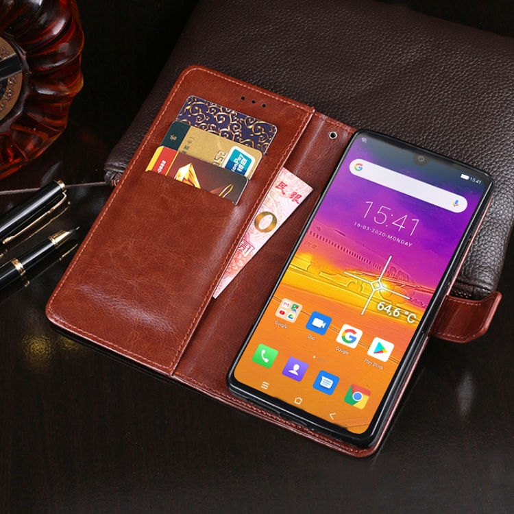 Funda de Cuero BlackView Bv9900 Pro Idewei Crazy Horse con Tapa Horizontal, Soporte, Ranuras y Billetera (Rosa Roja)
