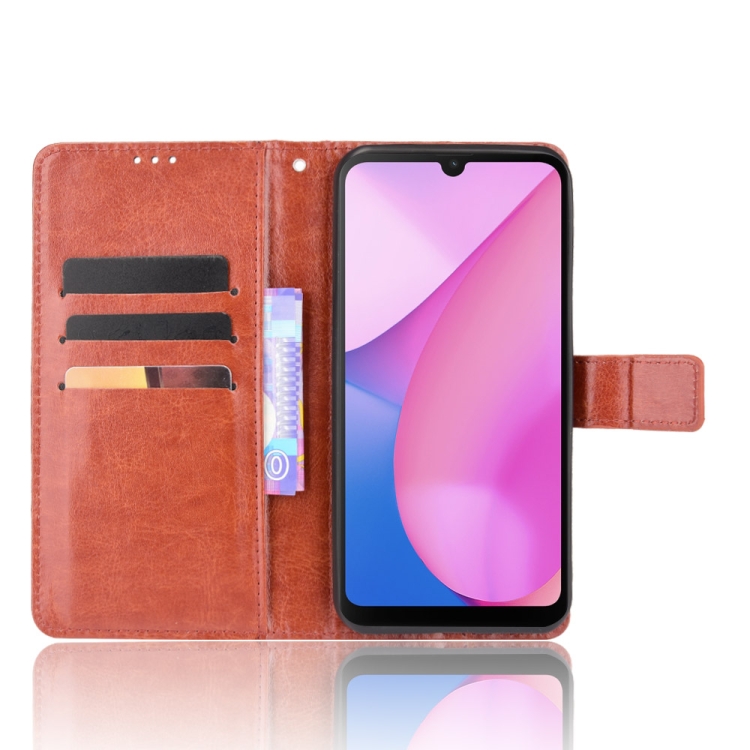 Funda de Cuero BlackView Oscal C20 Crazy Horse con Soporte y Ranuras para Tarjetas (Marrón)