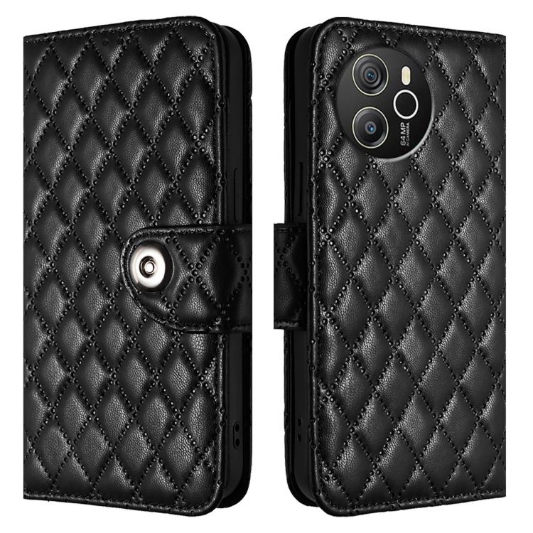 Funda de Cuero para BlackView Shark 8 con Tapa, Textura Rombal y Cordón (Negro)