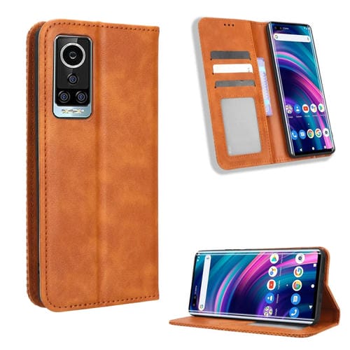 Funda de Cuero para Blu Bold N2 con Hebilla Magnética y Textura Retro (Marrón)