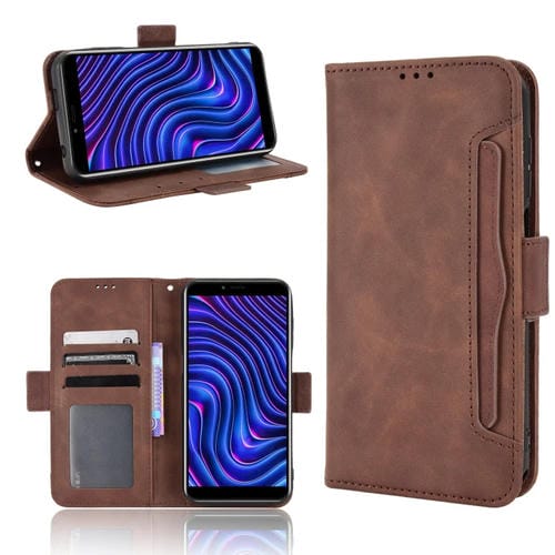Funda de Cuero para Blu C5 Max 2022 con Textura Skin Feel y Ranuras para Tarjetas (Marrón)