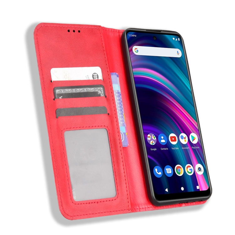 Funda para Blu G71 Plus Cuero Caballos Retro Hebilla Magnética (Rojo)
