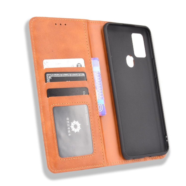 Funda de Cuero para Blu G91 Hebilla Magnética Retro Crazy Horse Textura Horizontal con Soporte y Ranuras para Tarjetas (Marrón)