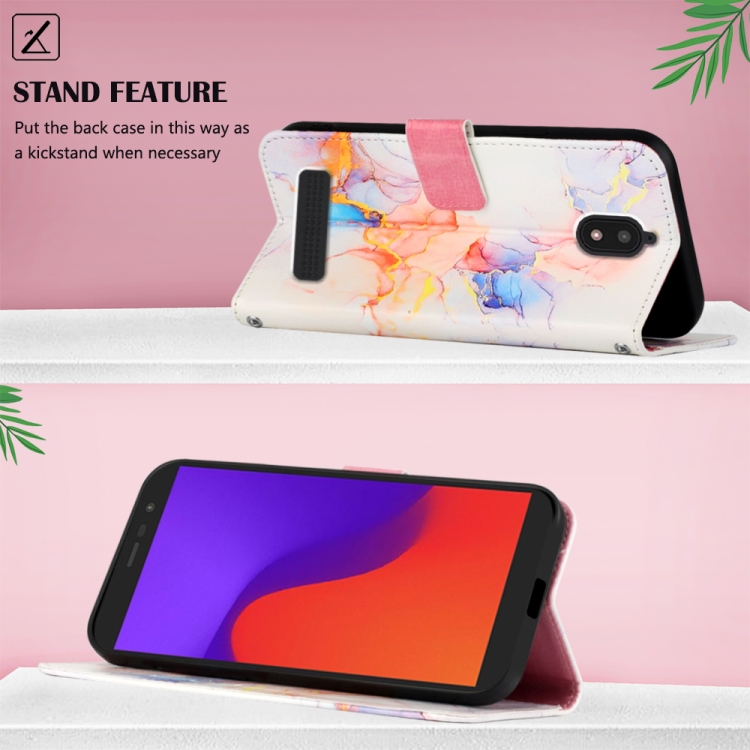 Funda para Blu View 2 (2020/2022) Pt003 con Tapa de Cuero y Diseño Mármol (Blanco Mármol)