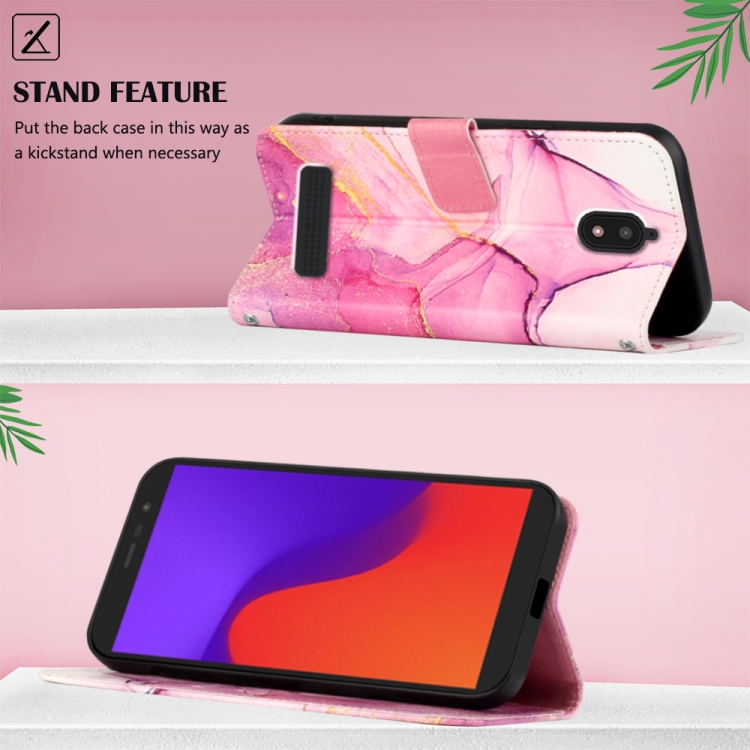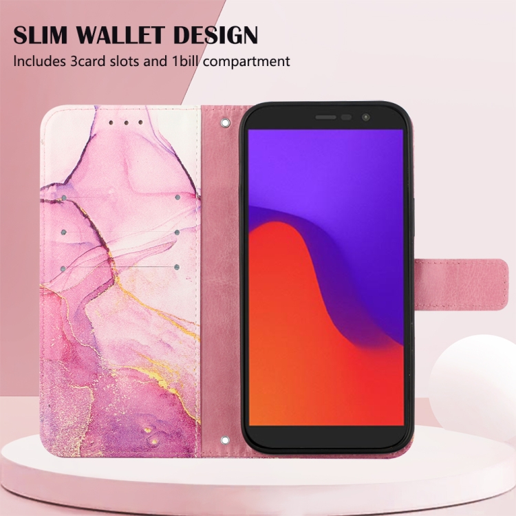 Funda para Blu View 2 (2020/2022) Pt003 con Tapa de Cuero y Patrón Mármol (Oro Rosa Púrpura)
