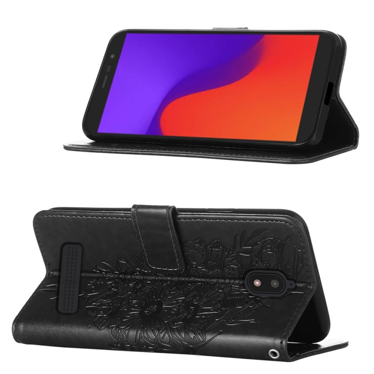 Funda de Cuero BLU View 2 2022/2020 con Tapa de Mariposa en Relieve (Negro)