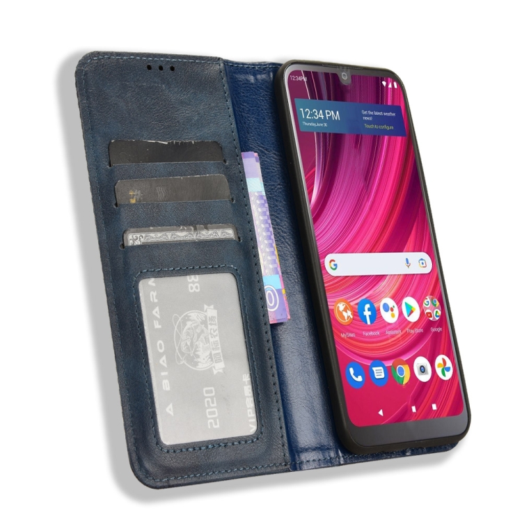 Funda para Teléfono BLU View 4 y View 2 202 Cuero Textura Retro Hebilla Magnética (Azul)