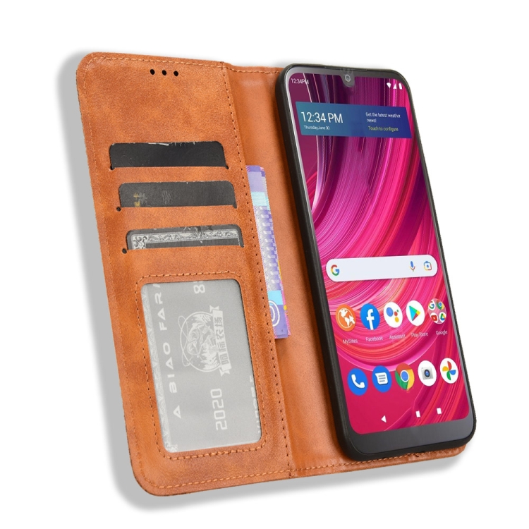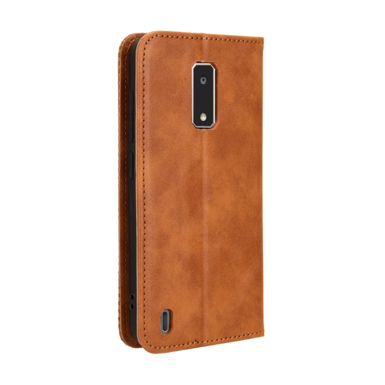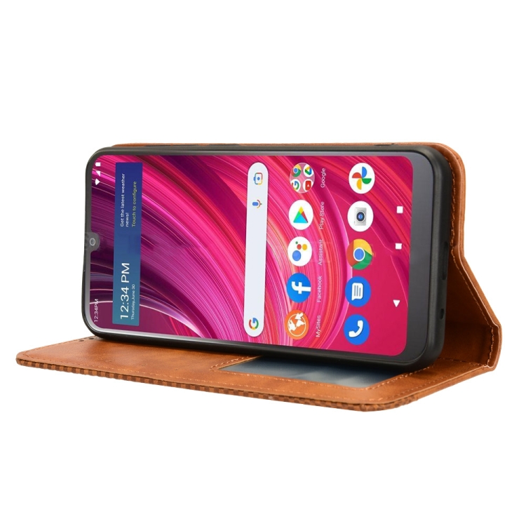 Funda para Teléfono BLU View 4 y View 2 202 Cuero Textura Retro Hebilla Magnética (Marrón)
