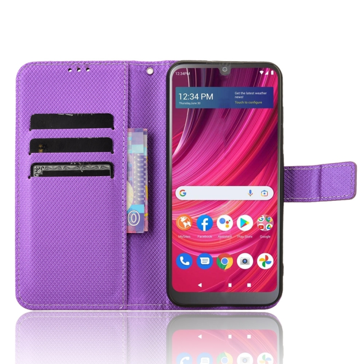 Funda de Cuero BLU View 4 / View 2 2023 con Textura de Diamante (Púrpura)