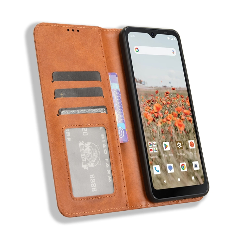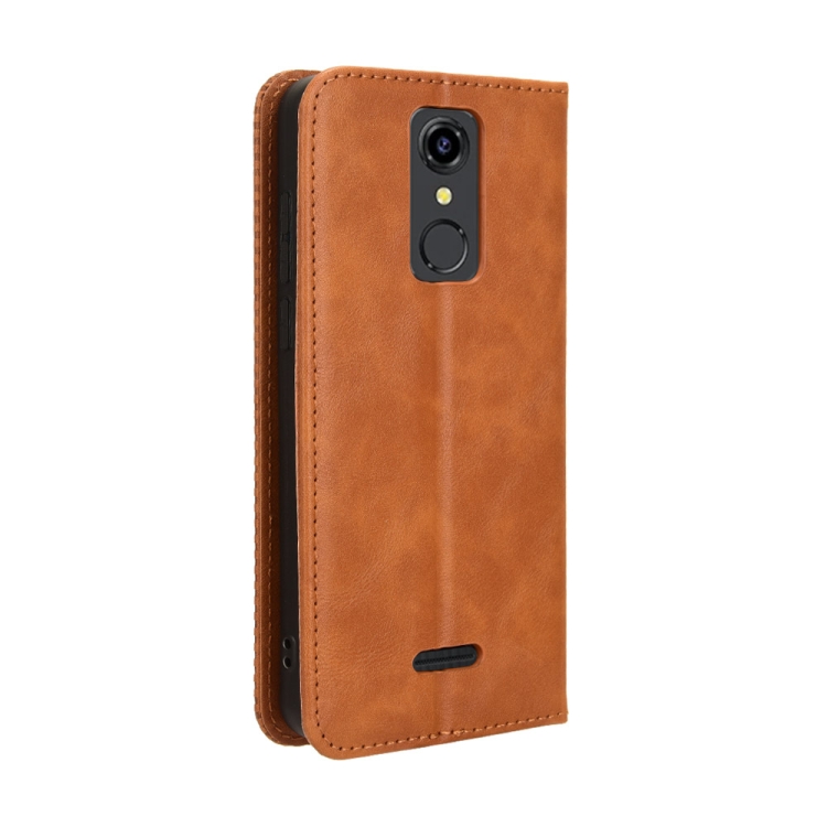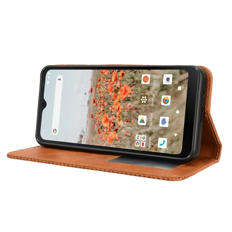 Funda para Teléfono Consumer Cellular Iris Connect Cuero Textura Retro Hebilla Magnética (Marrón)