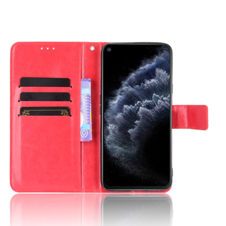 Funda de Cuero para Cubot C30 Retro Crazy Horse Texture con Soporte, Ranuras y Cordón (Rojo)