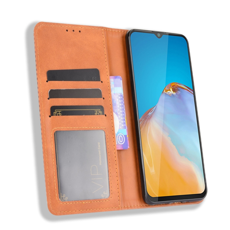 Funda de Cuero Cubot Note 20 / Nota 20 Pro con Hebilla Magnética, Soporte, Ranuras y Marco de Fotos (Marrón)