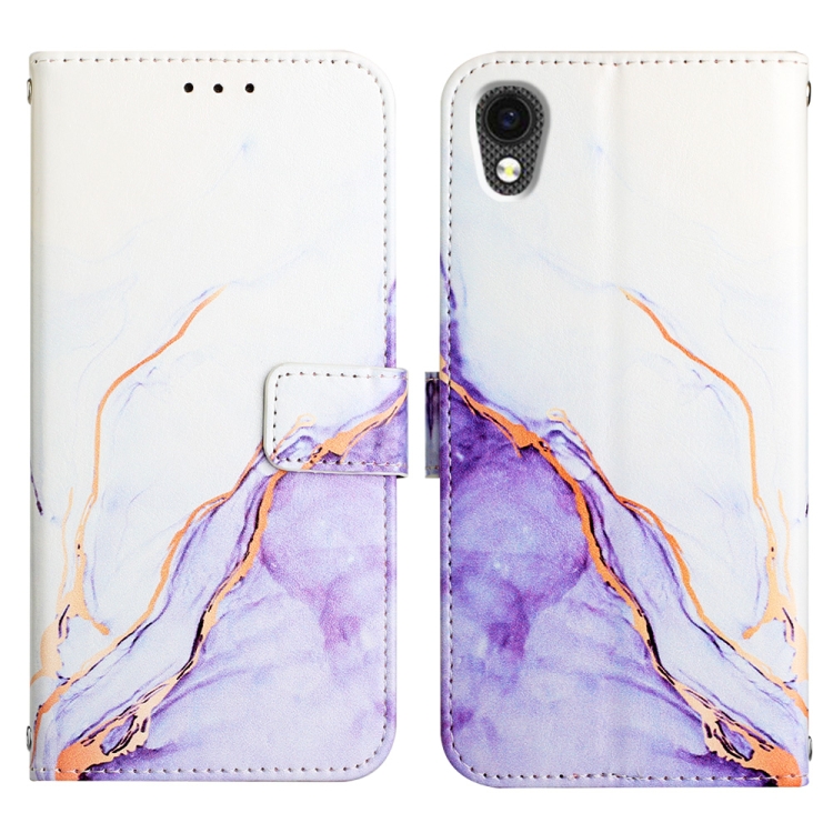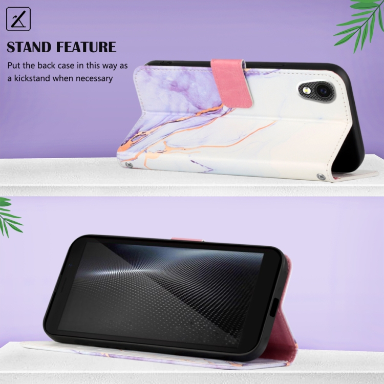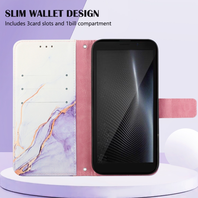 Funda para Cubot Pocket Pt003 con Tapa de Cuero y Patrón de Mármol (Blanco Púrpura)