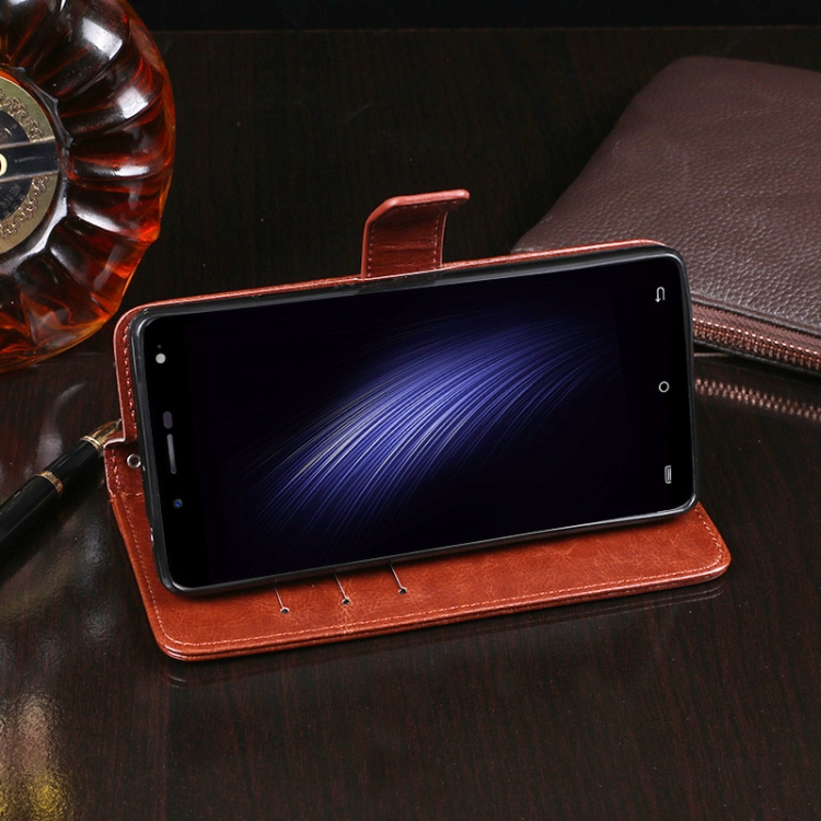 Funda de Cuero Cubot Rainbow 2 Idewei Crazy Horse con Tapa Horizontal, Soporte, Ranuras para Tarjetas y Billetera (Marrón)