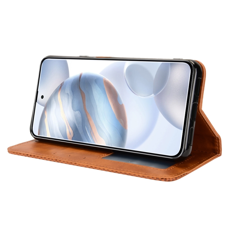 Funda de Cuero para Cubot X50 con Hebilla Magnética y Textura Retro (Marrón)