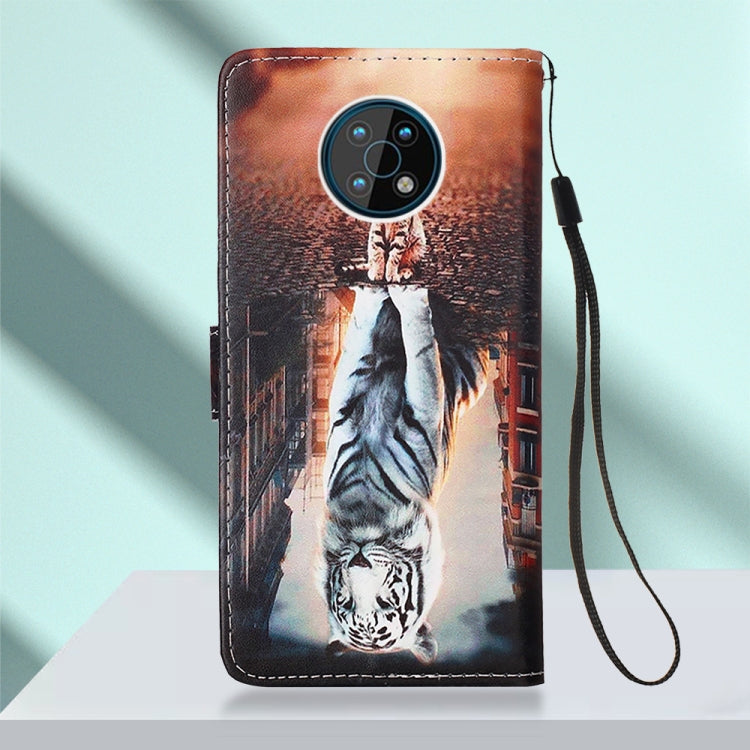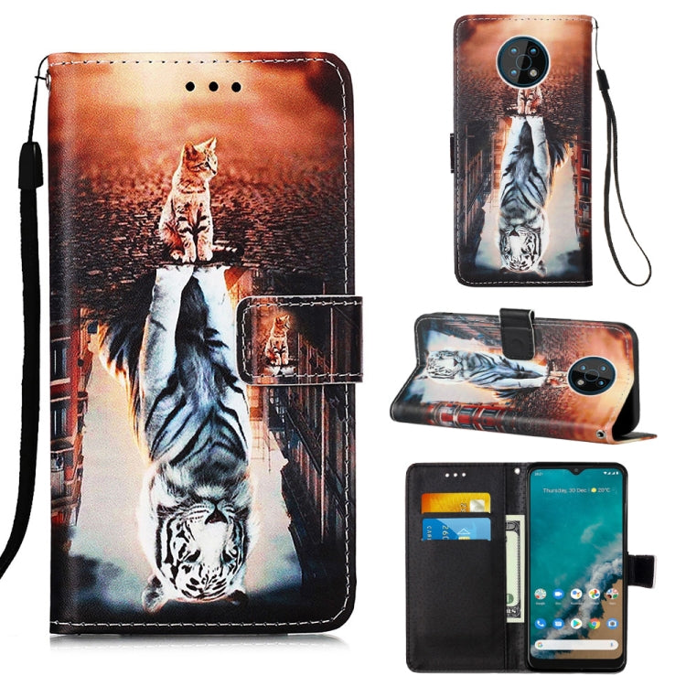 Estuche de Cuero para Nokia G50 con Dibujo de Color (Gato y Tigre)