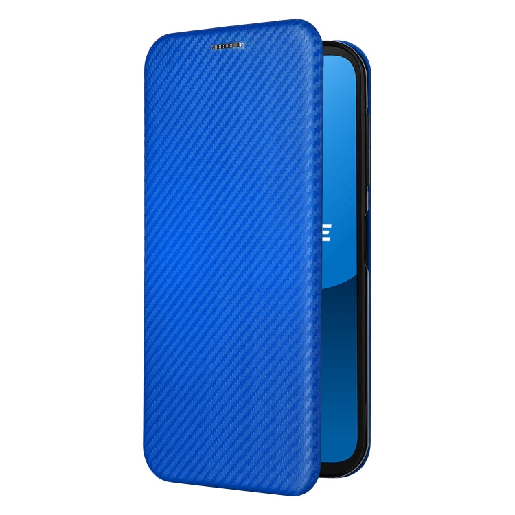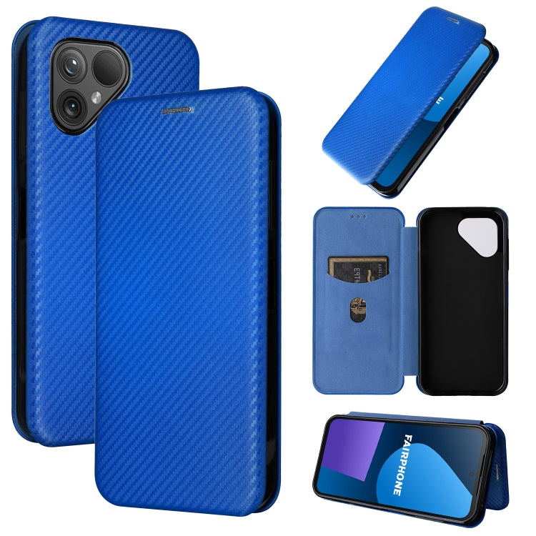 Funda de Cuero con Tapa para Fairphone 5 con Textura de Fibra de Carbono (Azul)