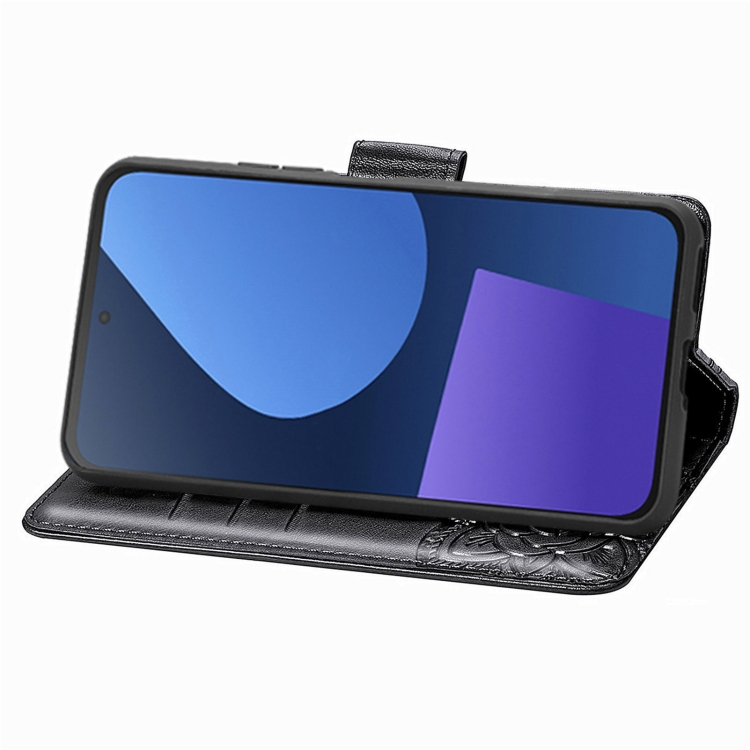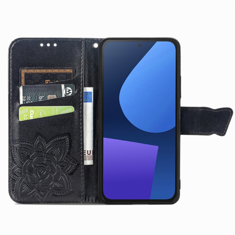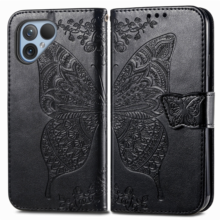 Funda de Cuero para Fairphone 5 con Relieve de Flor y Mariposa (Negro)