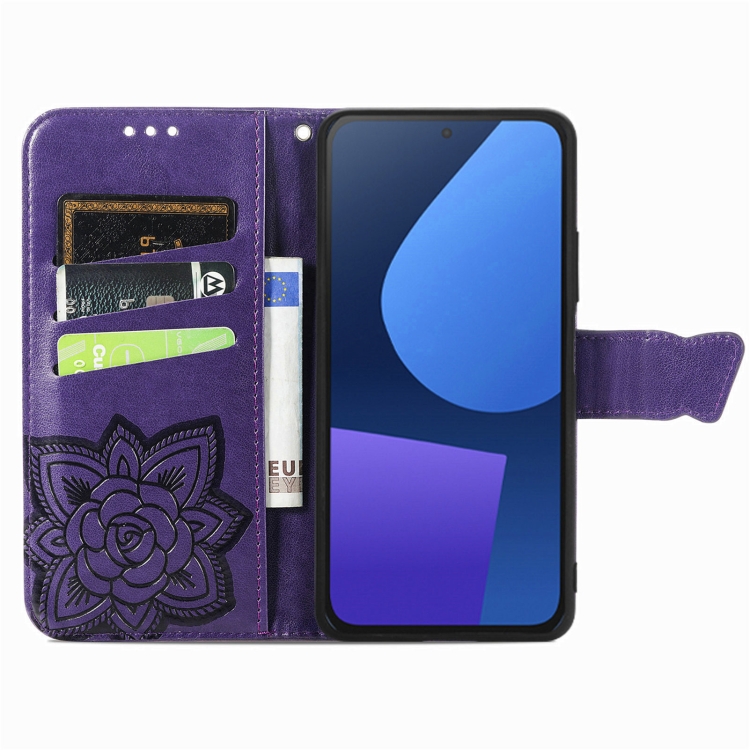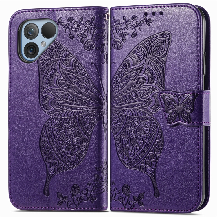 Funda para Fairphone 5 de Cuero con Relieve de Flor de Amor y Mariposa (Púrpura Oscuro)