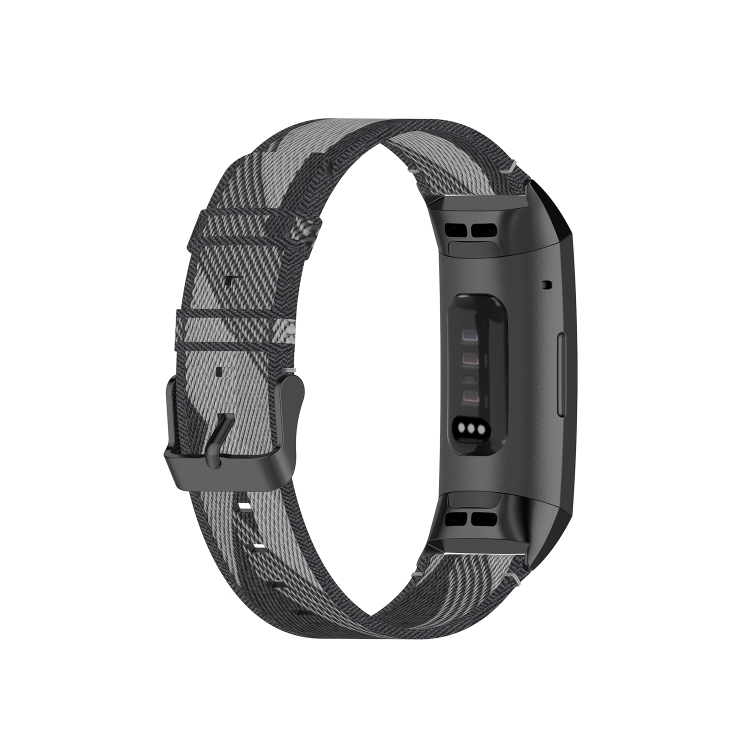 Para Fitbit Carga 4 / Carga 3 / Carga 3 Se Cabeza de Acero Inoxidable Grain Nylon Denim Reemplazo de la Correa Reloj de Reloj de Reloj