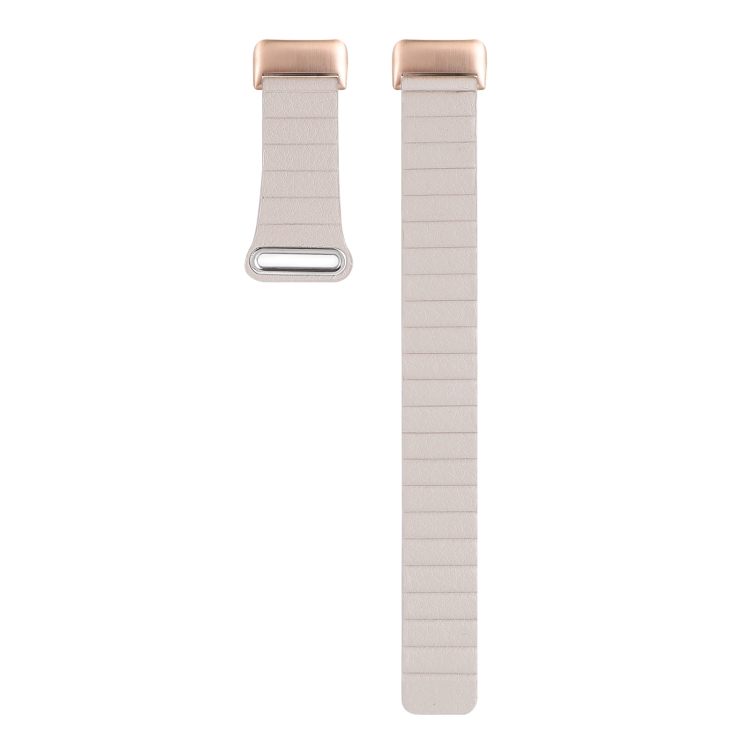 Correa de Reloj de Cuero para Fitbit Charge 5 con Bucle Magnético (Caqui)