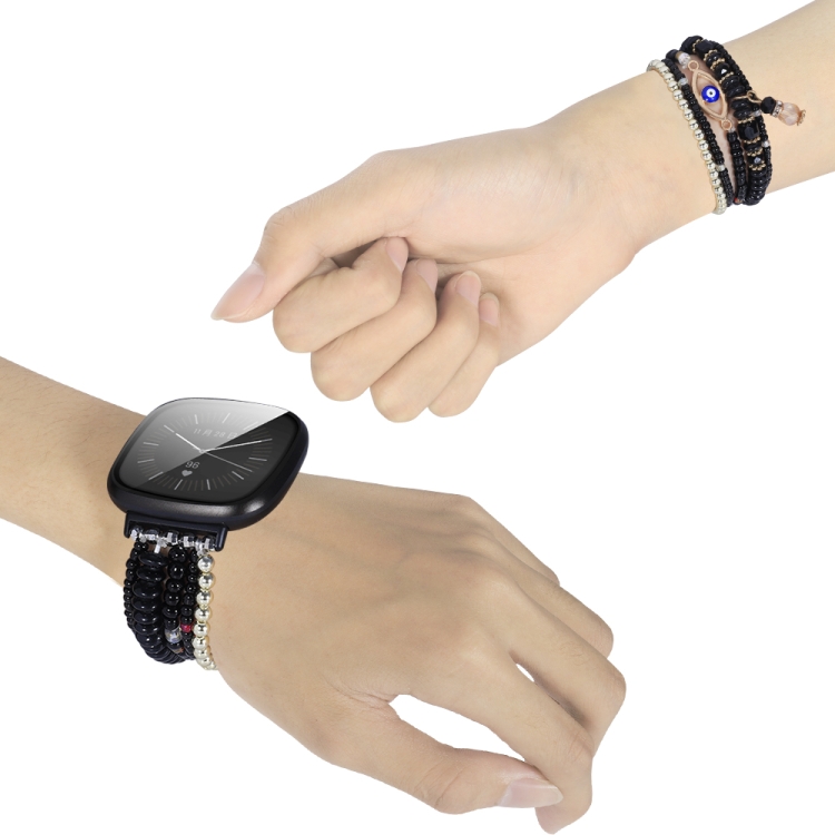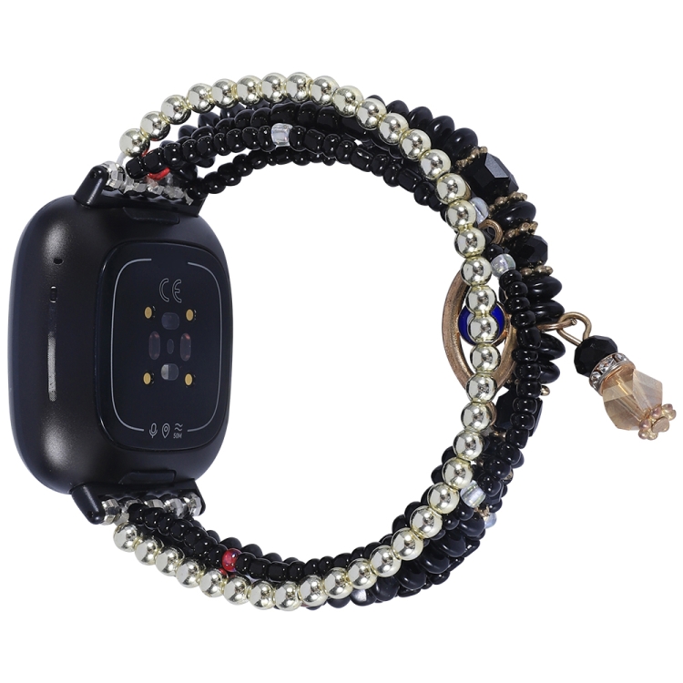 Correa para Fitbit Versa 3 y Sense Eye Bead Chain (Negro)