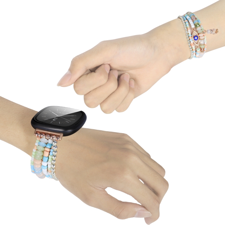 Correa para Fitbit Versa 3 y Sense Eye Bead Chain Watch Band (Rosa)