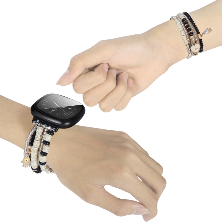 Pulsera para Fitbit Versa 3 y Sense Palm Bead Chain (Negro)