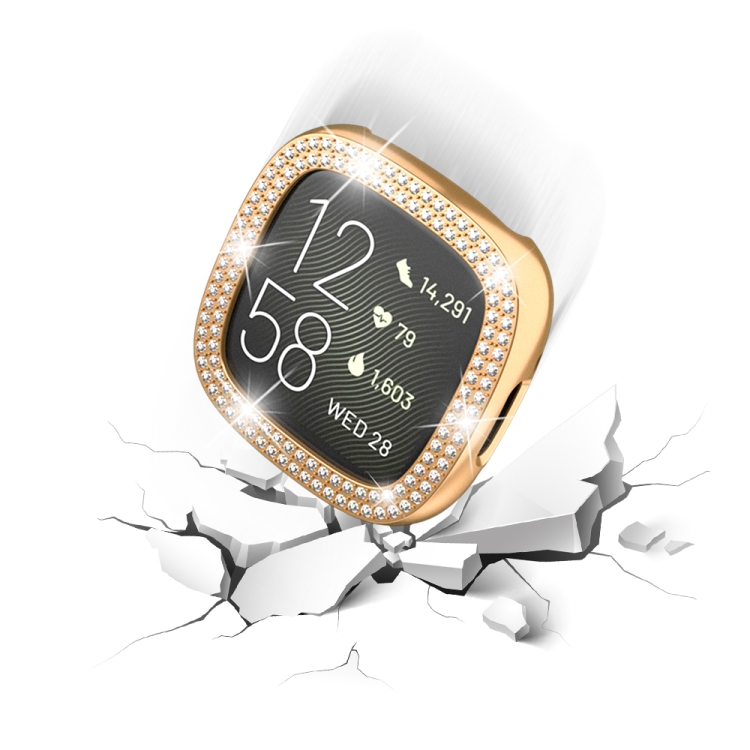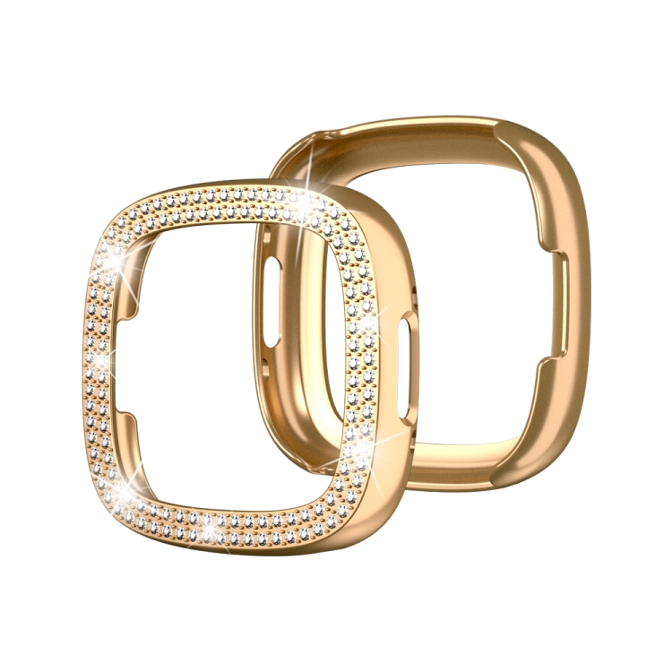 Caja de Reloj para Fitbit Versa 4 Galvanoplastia Diamante Doble Fila (Oro Rosa)