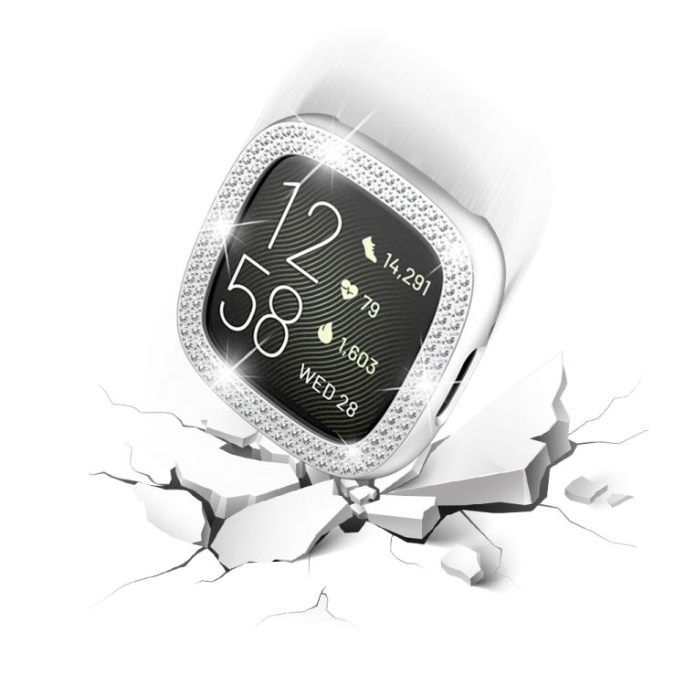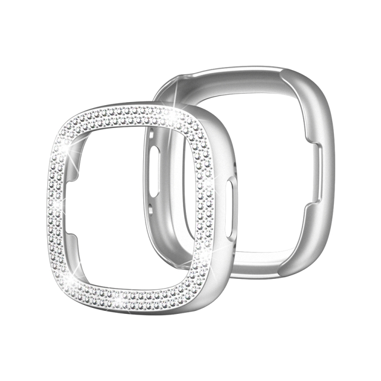 Caja de Reloj para Fitbit Versa 4 Galvanoplastia Doble Fila Diamante (Plata)