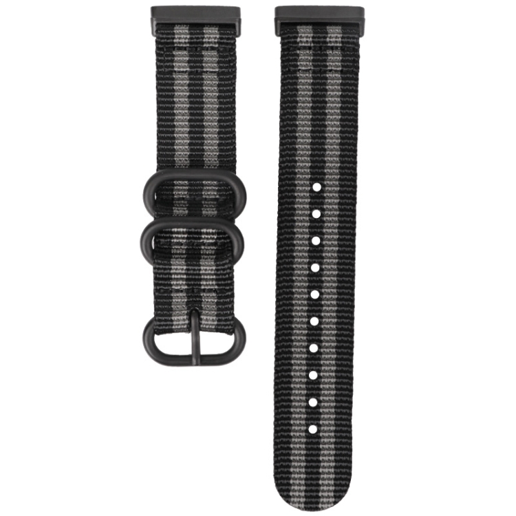 Correa de Nylon para Fitbit Versa 4 y Sense 2 con Hebilla de Acero Tres Anillos (Gris Negro)