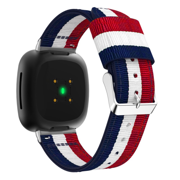 Correa Nylon Universal para Fitbit Versa 4 y Sense 2 Stripe (Azul Blanco Rojo)