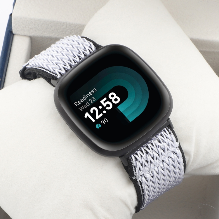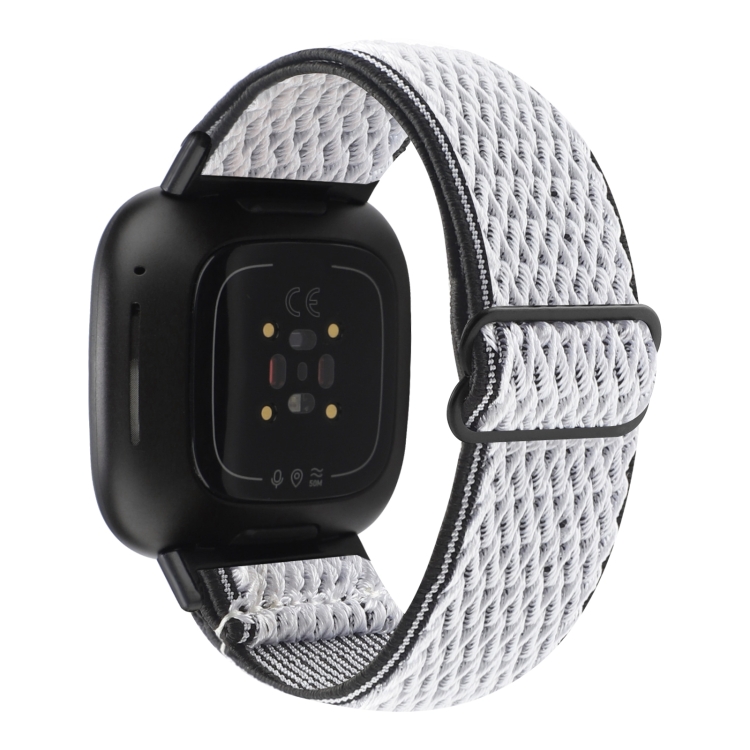 Correa Nylon Universal para Fitbit Versa 4 y Sense 2 Wave (Blanco Negro)