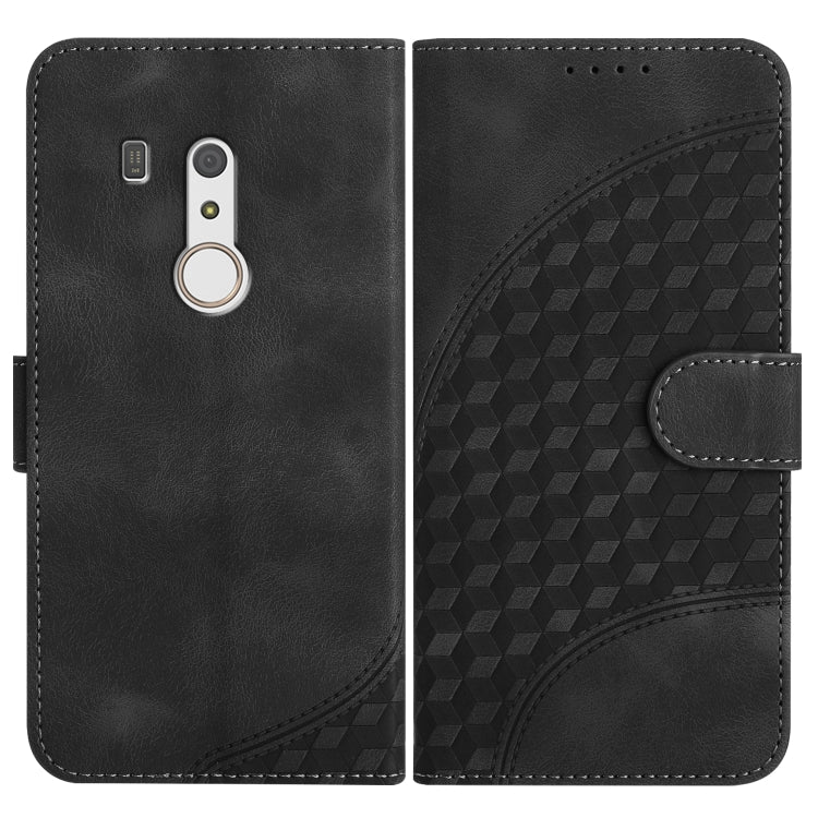 Funda de Cuero para Fujitsu Arrows Be3 Yx0060 con Relieve y Cabeza de Elefante con Cordón (Negro)