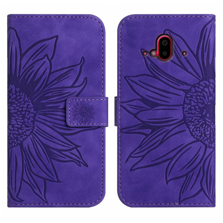 Funda Flip de Cuero para Fujitsu Arrows F-52B con Cordón y Diseño Sun Flower (Púrpura Oscuro)