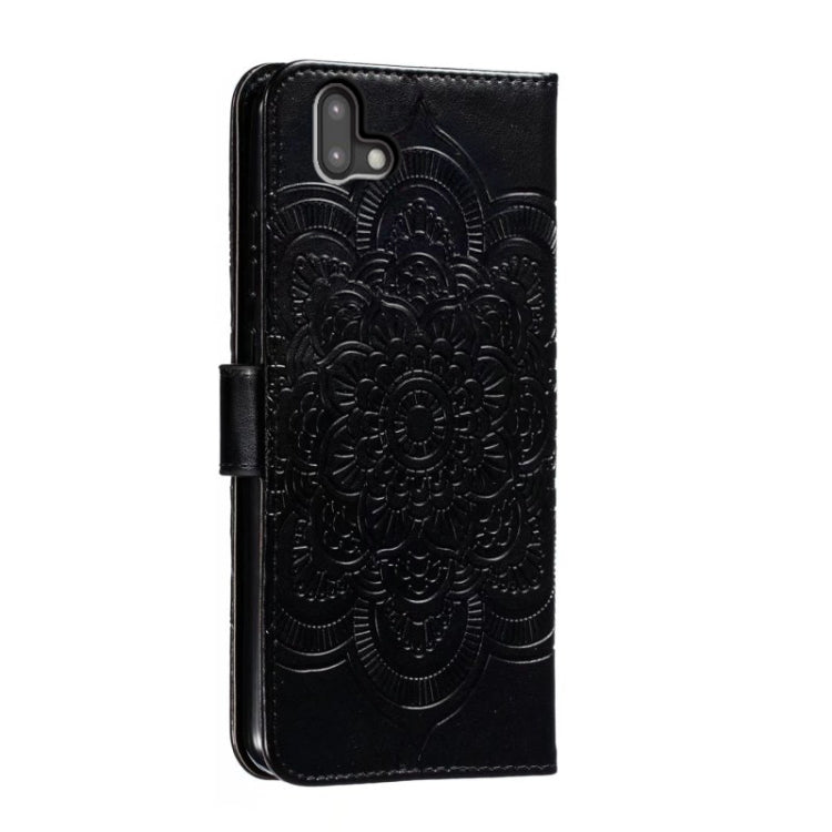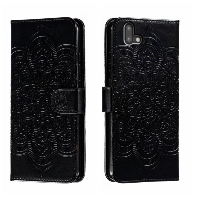 Funda de Cuero para Fujitsu Arrows U Sun Mandala con Patrón en Relieve (Negro)