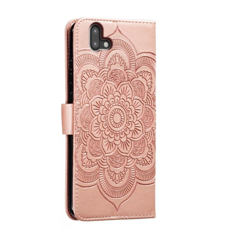 Funda de Cuero para Fujitsu Arrows U Sun Mandala con Patrón en Relieve (Oro Rosa)