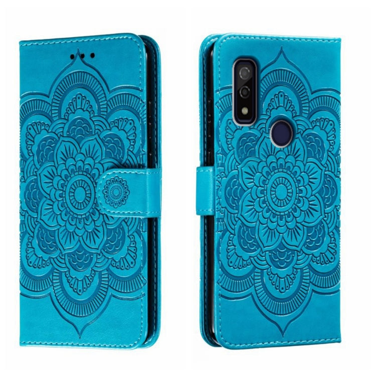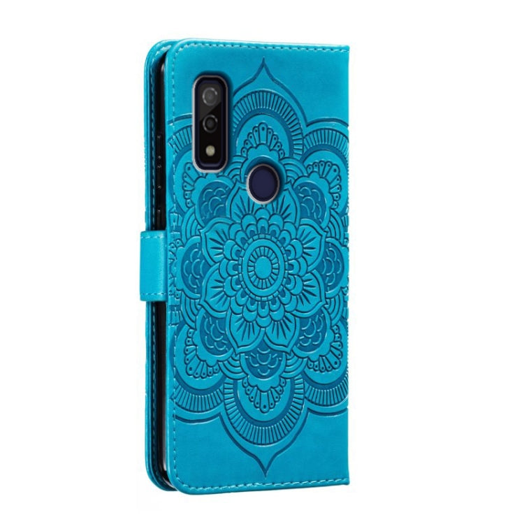 Funda de Cuero para Fujitsu Arrows We F-51B con Patrón En Relieve Sun Mandala (Azul)