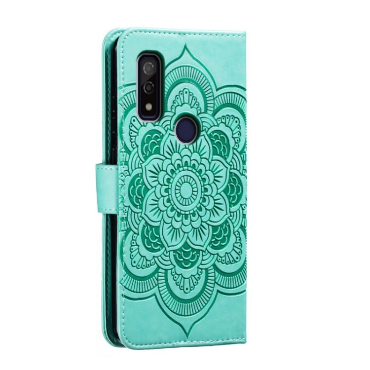 Funda de Cuero para Fujitsu Arrows We F-51B con Patrón En Relieve Sun Mandala (Verde)