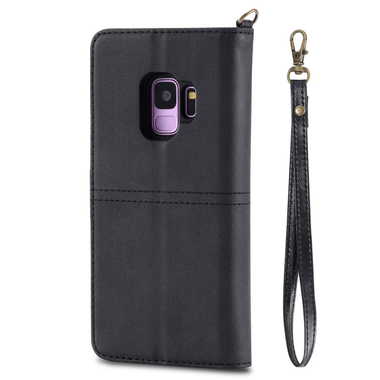 Estuche de Cuero Para Galaxy S9 con Tapa Horizontal Magnética Desmontable Multifuncional Ranuras Tarjetas Soporte Billetera Marco Fotos (Negro)