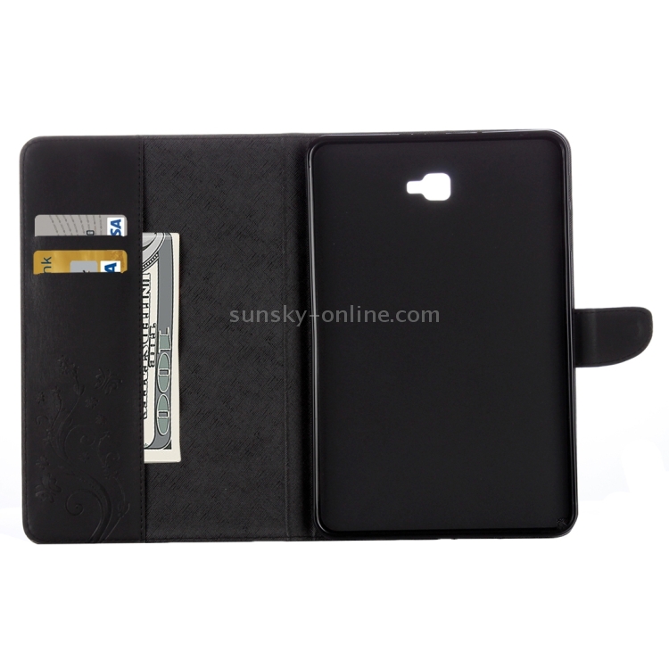 Para Galaxy Tab A 10.1 (2016) / P580 Butterflies Love Flowers Estuche de cuero con tapa horizontal en relieve con soporte, ranuras para tarjetas y billetera (negro)