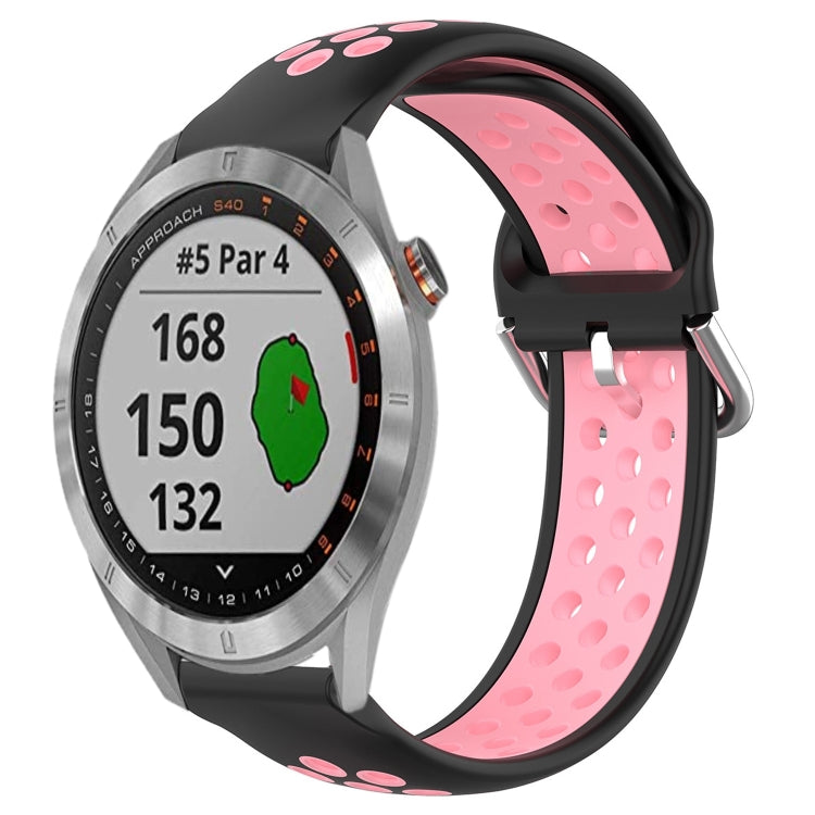 Banda de Reloj de Silicona Deportiva para Garmin Approach S40 20mm (Negro + Rosa)