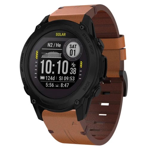 Correa de Reloj para Garmin Descent G1 con Hebilla de Acero y Cuero 22mm (Marrón)