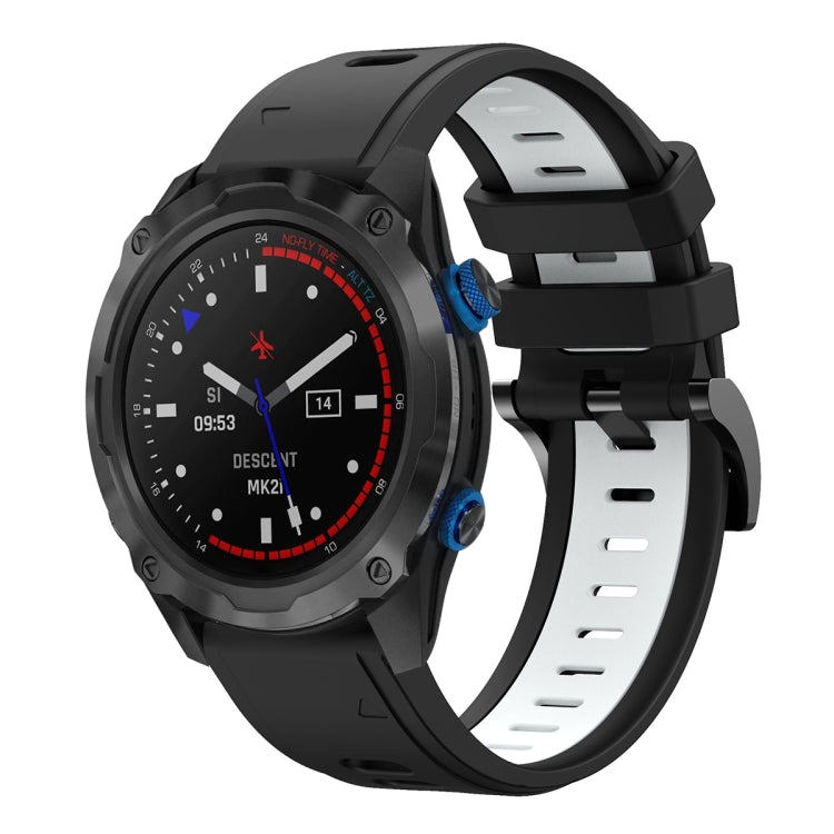 Banda de Reloj de Silicona Deportiva para Garmin Descent Mk 2I 26mm (Negro + Blanco)