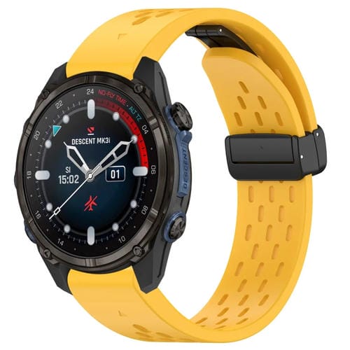 Correa de Silicona para Garmin Descent Mk3I 43mm 20mm con Hebilla Plegable Magnética (Amarillo)