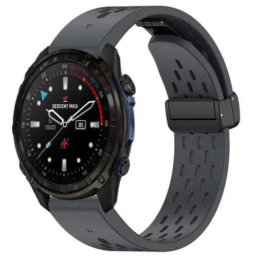 Correa de Silicona para Garmin Descent Mk3I Mk3 51mm 26mm con Hebilla Plegable Magnética (Gris Oscuro)